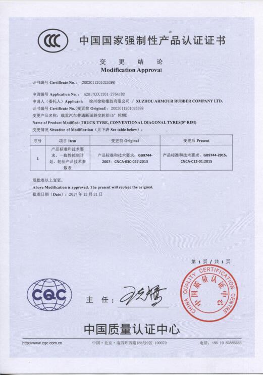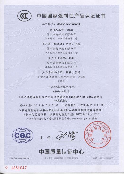 質(zhì)量是企業(yè)的生命,是企業(yè)得以生存和發(fā)展的基礎(chǔ)。公司自2006年創(chuàng)辦以來,徐輪橡膠就是一直對(duì)產(chǎn)品品質(zhì)孜孜以求,精益求精。以“質(zhì)量是生命 科技求領(lǐng)先 過程零缺陷 服務(wù)到永遠(yuǎn)”為質(zhì)量方針,徐州徐輪橡膠有限公司建立健全了科學(xué)完善的質(zhì)量保證體系,自2009年起先后通過了ISO9001-2008、CCC、美國DOT、歐洲E-mark等質(zhì)量體系認(rèn)證。