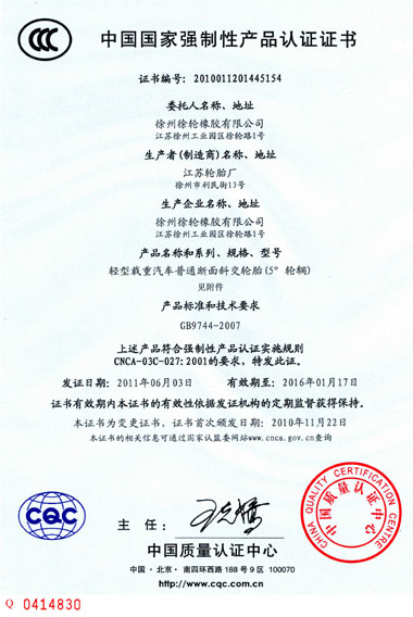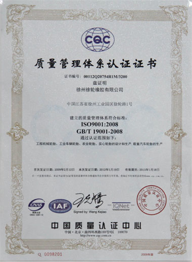 質(zhì)量是企業(yè)的生命,是企業(yè)得以生存和發(fā)展的基礎(chǔ)。公司自2006年創(chuàng)辦以來(lái),徐輪橡膠就是一直對(duì)產(chǎn)品品質(zhì)孜孜以求,精益求精。以“質(zhì)量是生命 科技求領(lǐng)先 過(guò)程零缺陷 服務(wù)到永遠(yuǎn)”為質(zhì)量方針,徐州徐輪橡膠有限公司建立健全了科學(xué)完善的質(zhì)量保證體系,自2009年起先后通過(guò)了ISO9001-2008、CCC、美國(guó)DOT、歐洲E-mark等質(zhì)量體系認(rèn)證。